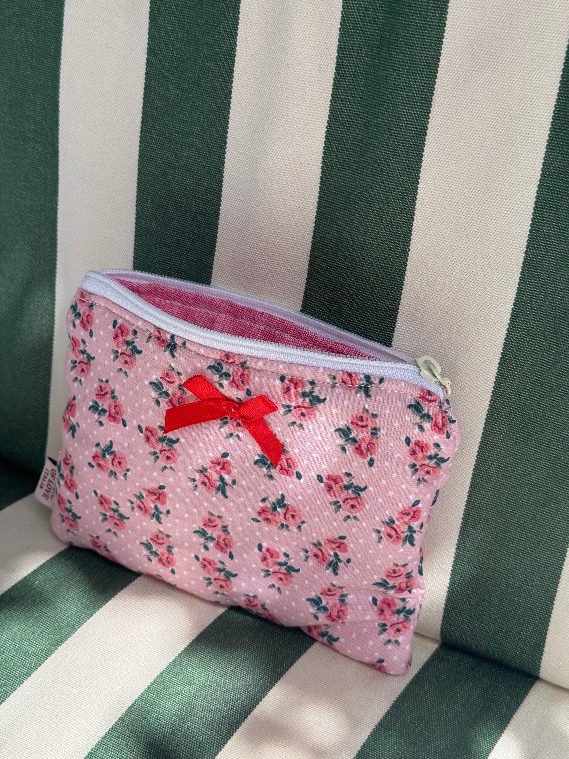 Realizzata a mano con tessuti di alta qualità, la nostra pochette è perfetta per contenere AirPods o monete, carina anche come charms vicino ad una borsa!